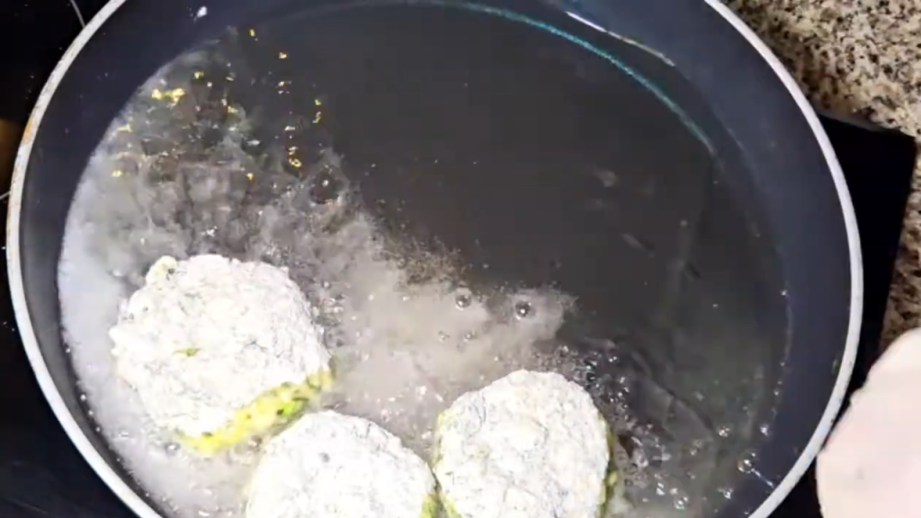 Façonnez des petites boules, puis aplatissez-les légèrement pour former des galettes. Passez chaque galette dans la farine, des deux côtés.